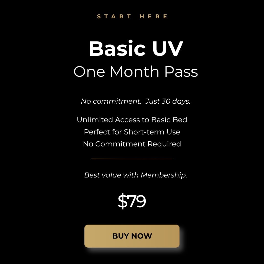 Enjoy 30 days of unlimited access to our basic UV tanning option at Tan403. Perfect for clients who want a straightforward, consistent tanning routine at a great value.
